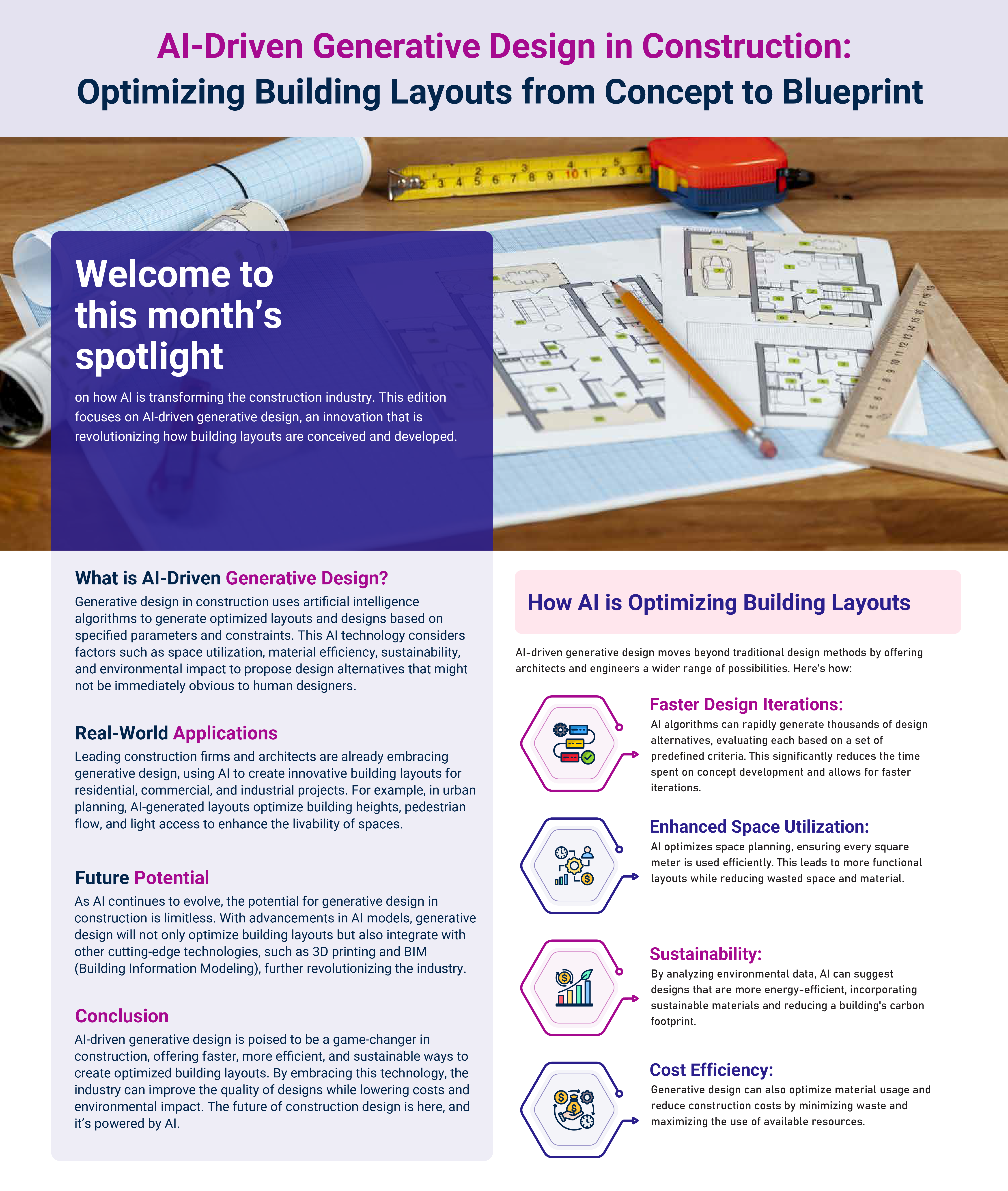on how AI is transforming the construction industry. This edition focuses on AI-driven generative design, an innovation that is revolutionizing how building layouts are conceived and developed.