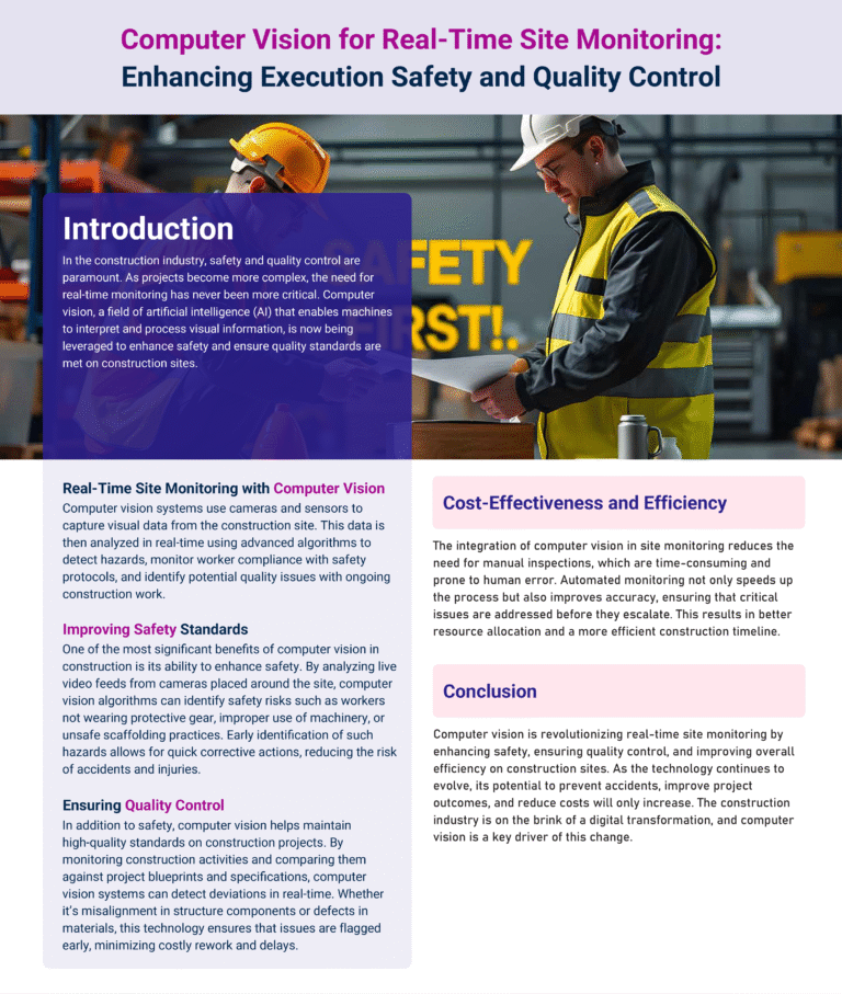 The integration of computer vision in site monitoring reduces the need for manual inspections, which are time-consuming...